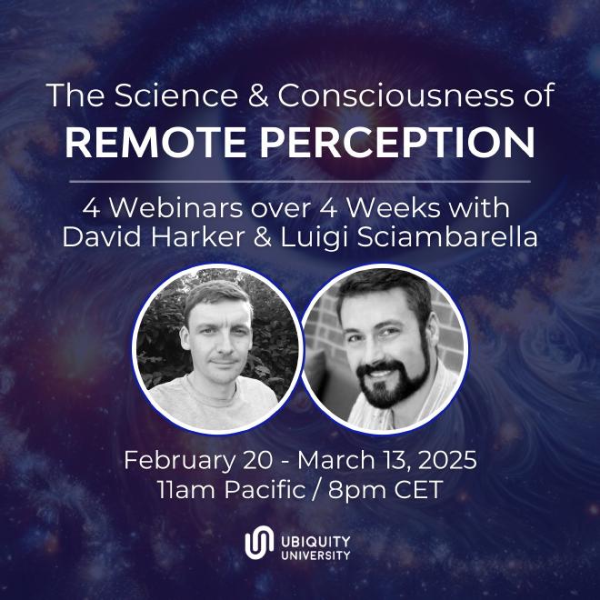 Recording available for Ubiquity students and the general public here: https://www.ubiquityuniversity.org/the-science-and-consciousness-of-remote-perception/